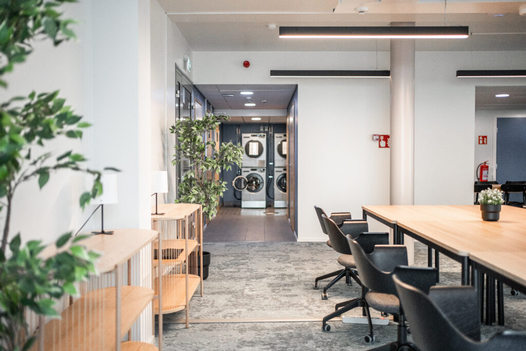 Kyllä! Vuokra sisältää pääsyn kaikkiin yhteisiin tiloihin. Hintaa sisältyy muun muassa elokuvahuone, CoWorking, kirjasto, kuntosali sekä yhteinen keittiö.