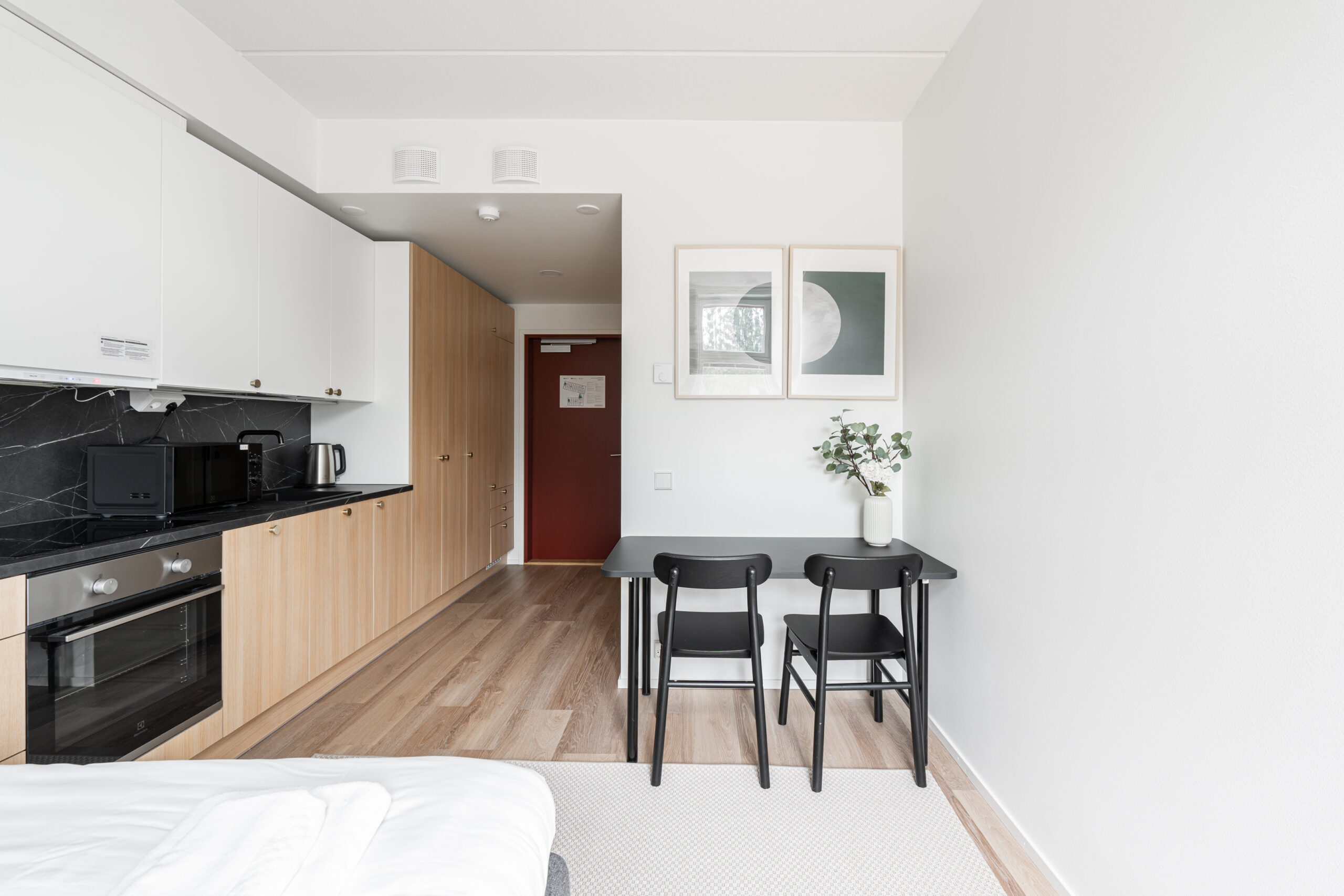 Eloisa, kevyesti kalustettu studio, asuntomestari ja yhteiset tilat. Voit asua meillä 1-6 kuukautta.